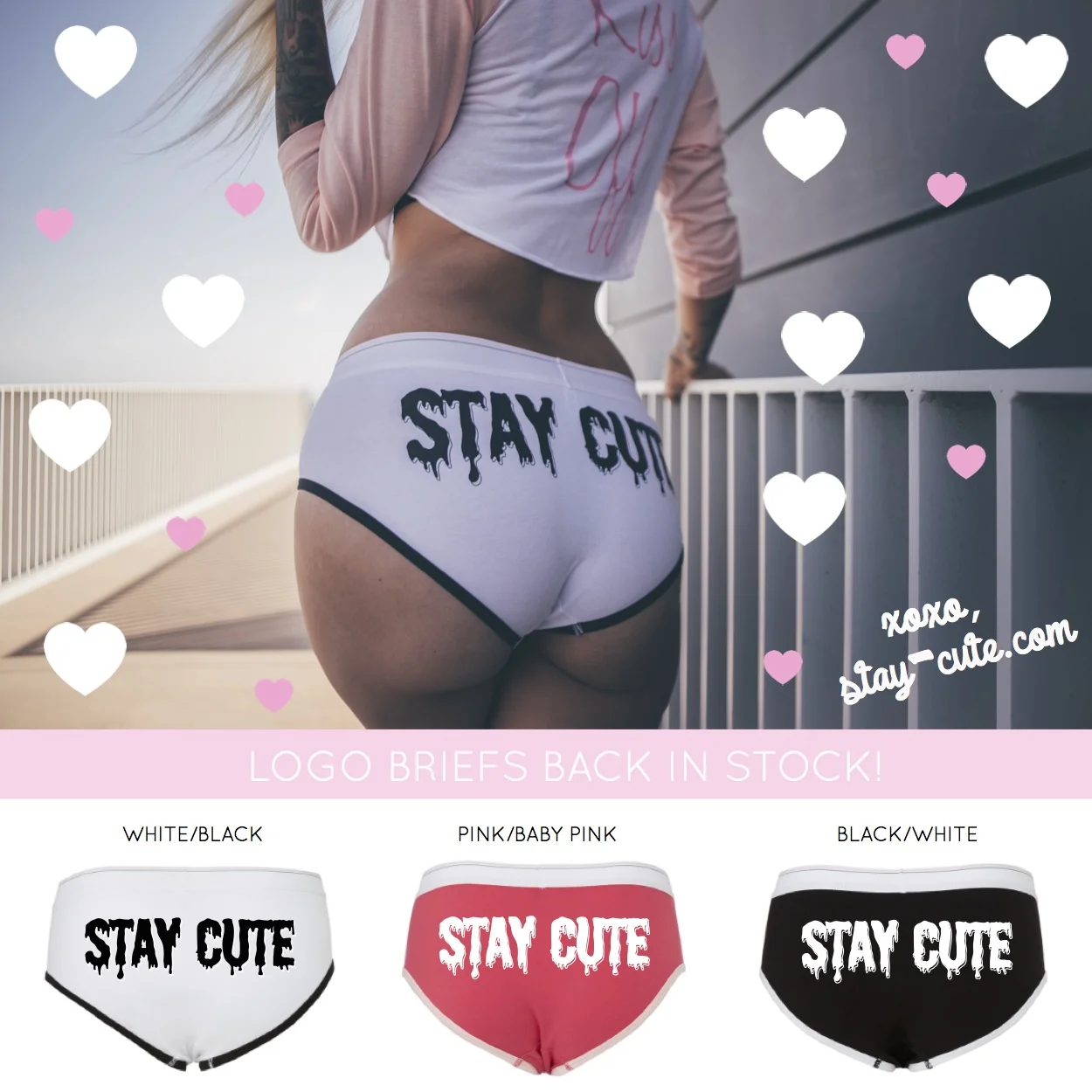 BACK IN STOCK! January 16, 2018 Stay Cute Logo briefs are back in stock! (now available in white, pink, and black!)JUST IN TIME FOR VALENTINE'S DAY!!!XOXO